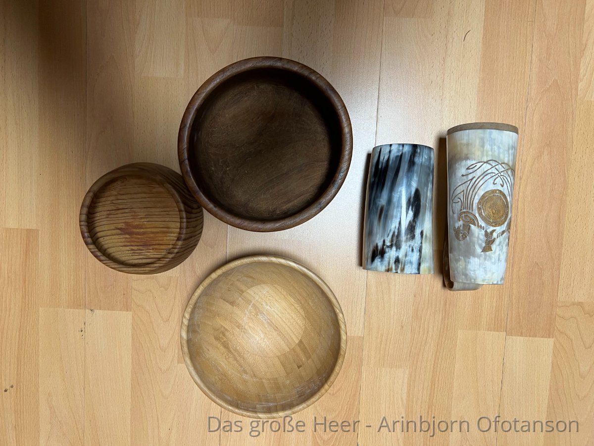 15. Schüsseln und Tringefäße aus Horn (habe leider keinen einfachen Tonkrug)