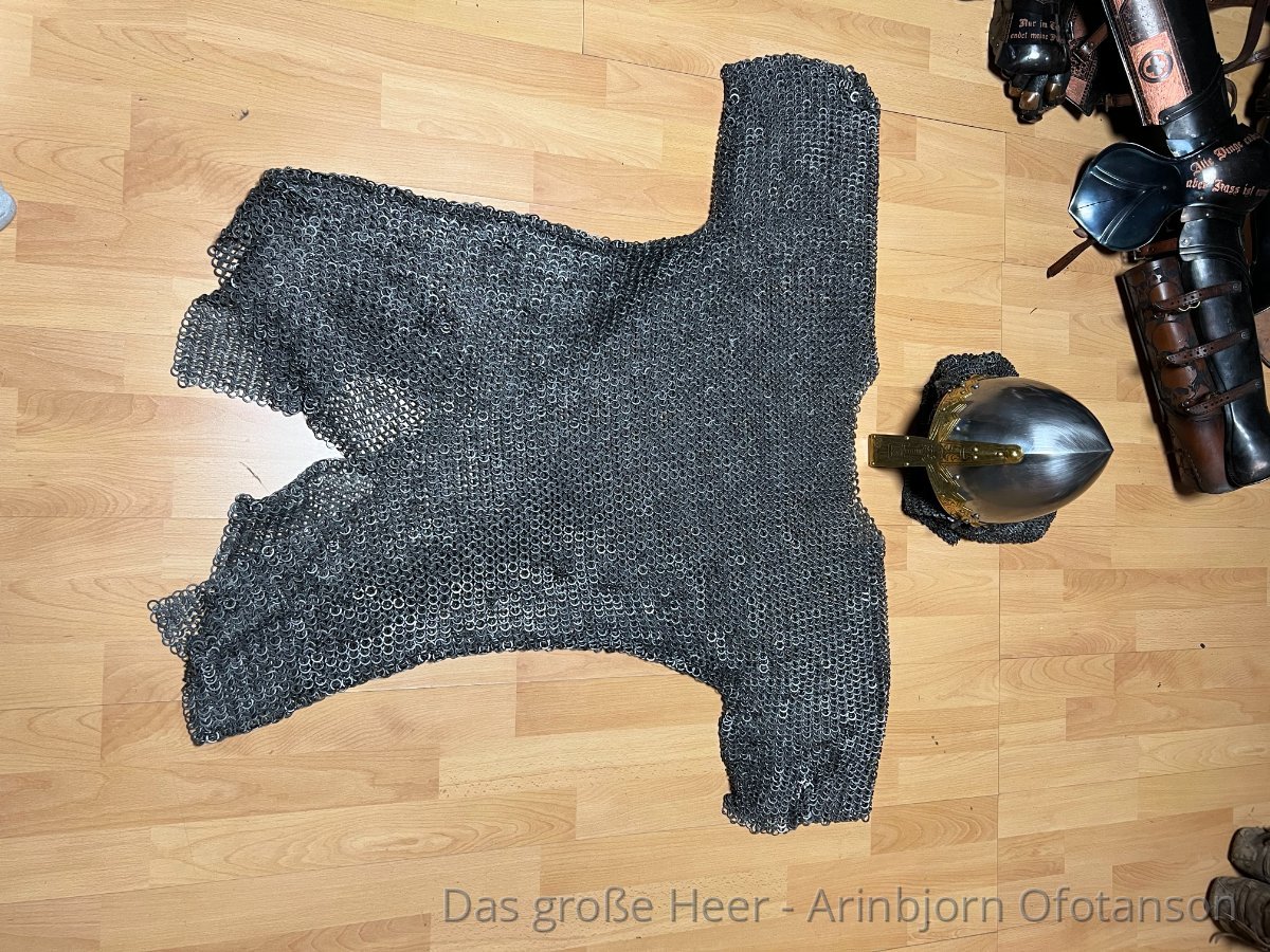 11. Kettenhemd vollvernietet und Helm mit Brünne