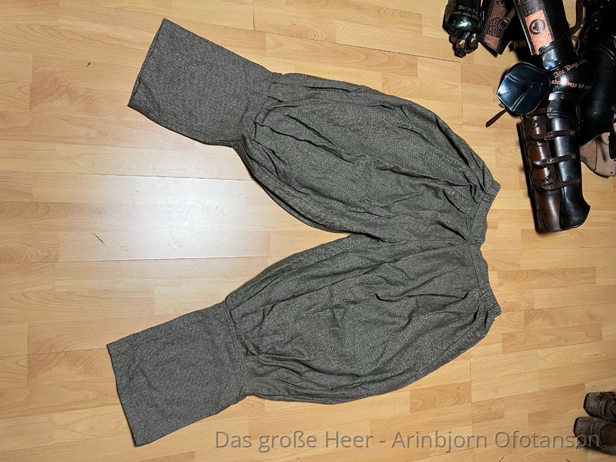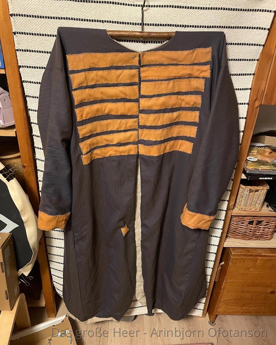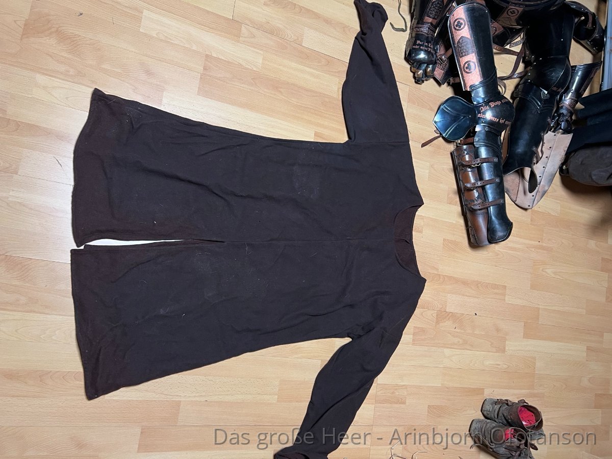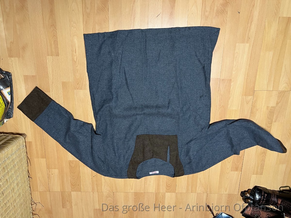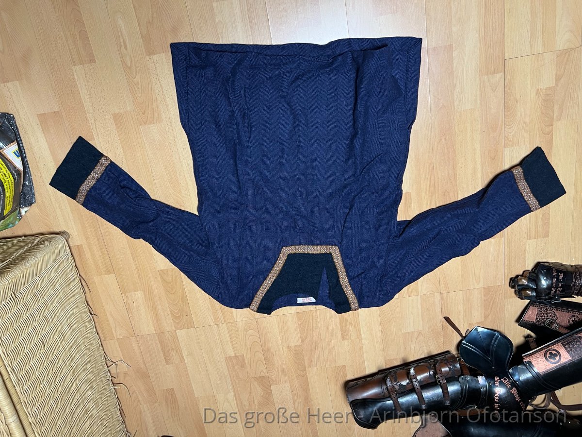 - Die schwarze Tunika auf dem ersten Bild, auch wegen des Front und Rückenschlitzes (Funde entweder ungeschlitzt, mit Keilen, oder seitlichen Schlitzen und letzteres tendenziell eher vor der Wikingerzeit als während. Schwarz ist auch verpönt. Wobei das eher an den Leuten liegt, die "coole" schwarze Outfits im LARP tragen, als an der Möglichkeit schwarz zu färben.