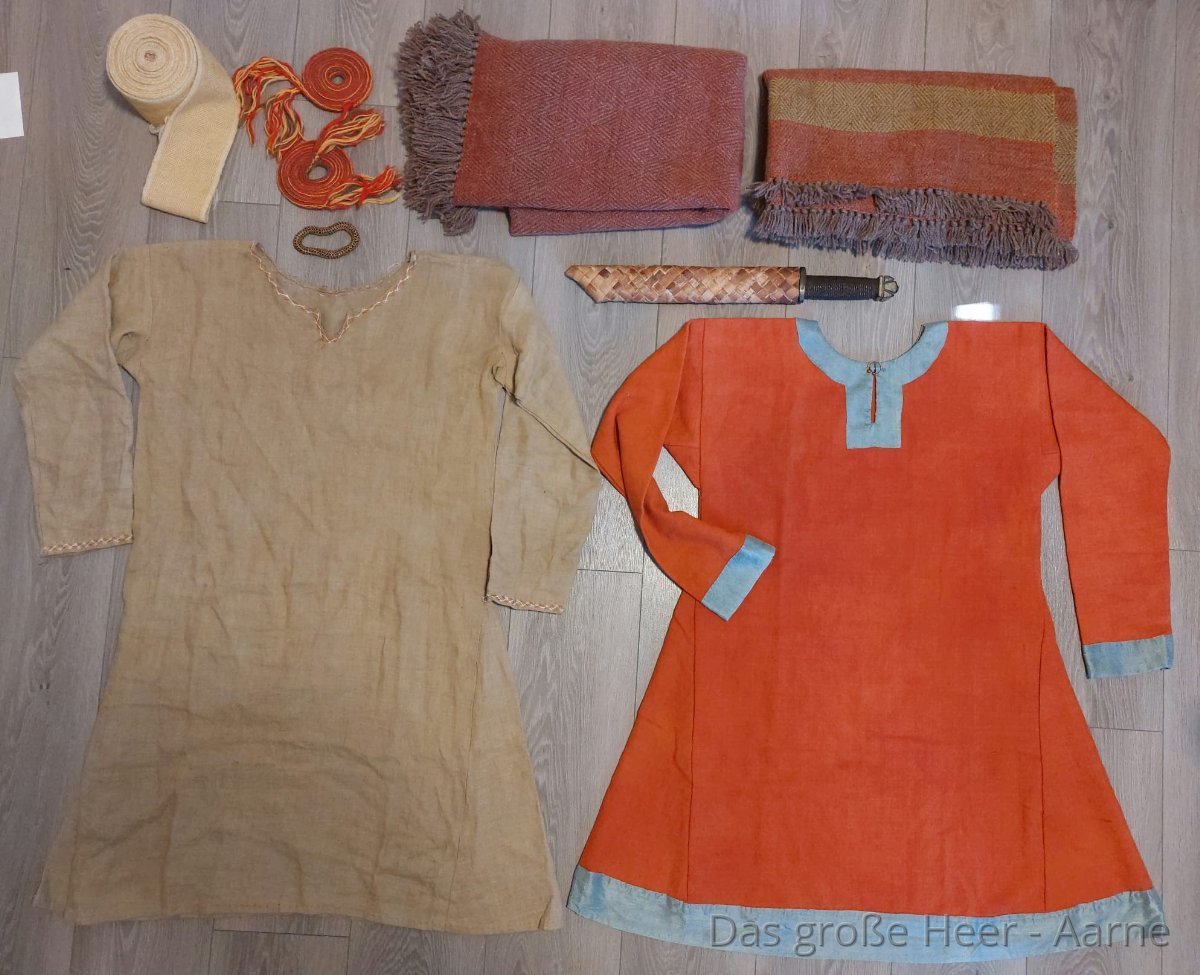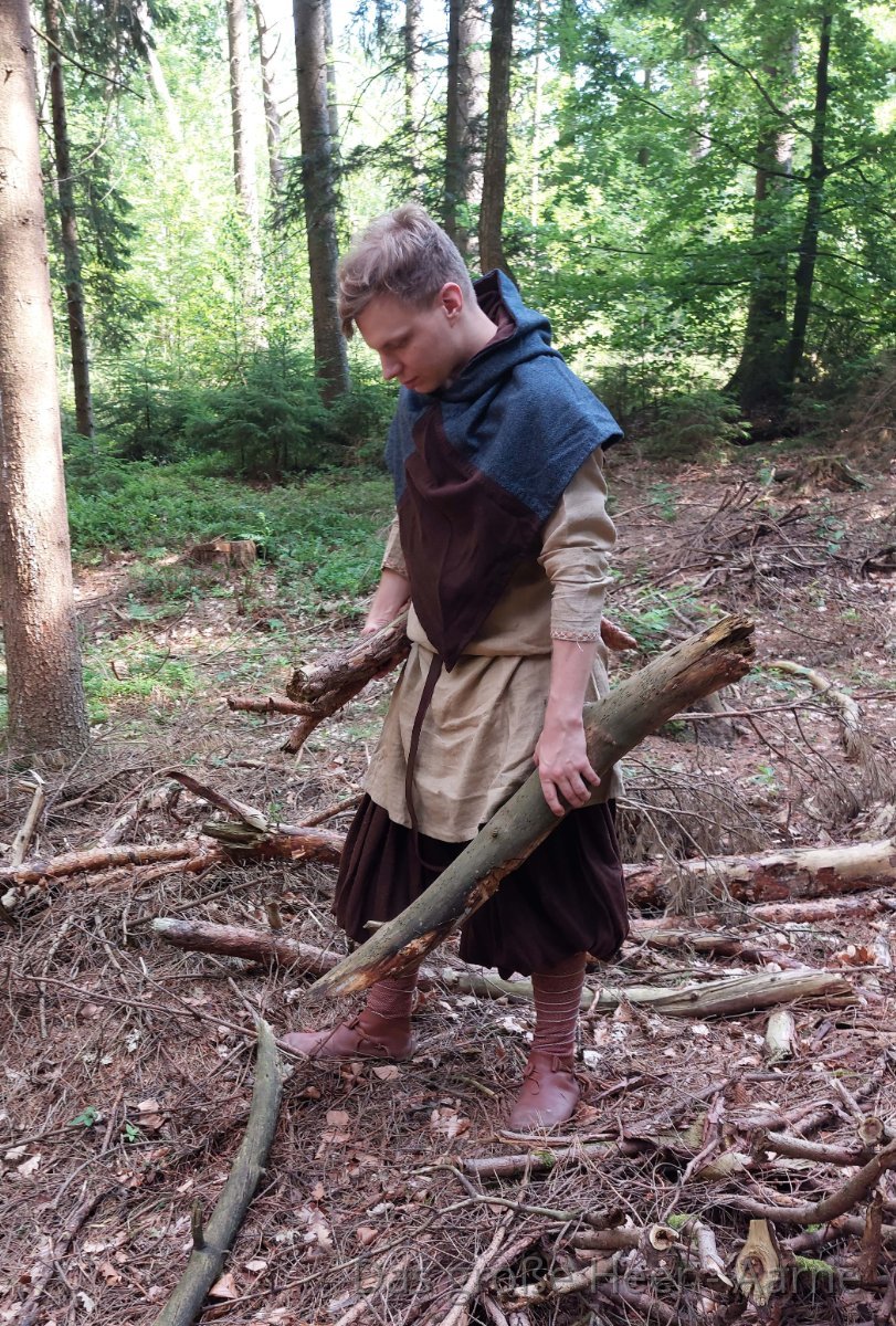 Mein Charakter, Aarne, ist ein halb karelischer, halb gotländischer Händler, der die Ostsee und andere östliche Wasserwege bereist. Diese Rolle gibt mir die Möglichkeit, einen Charakter darzustellen, der eine Sprache in einem fremden Land lernt, und ermöglicht es mir, meine handwerklichen Interessen durch den Verkauf verschiedener Waren einzubringen. Meine Ausrüstung ist größtenteils handgefertigt, pflanzengefärbt und/oder handgenäht und ist derzeit eher historisch inspiriert als historisch rekonstruiert. In meiner Garderobe habe ich beispielsweise ein wenig zu viel zweifarbigen Fischgrätmuster- und Diamantköper - ein 'Fehler', den ich beheben werde, sobald mein Webstuhl aufgebaut ist.