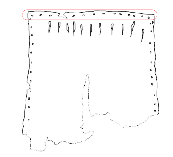 Die Nahtlöcher im oberen Bereich des Fragments kann man als eine Art Ziernaht interpretieren. Dazu komme ich aber im späteren Verlauf der Anleitung.
