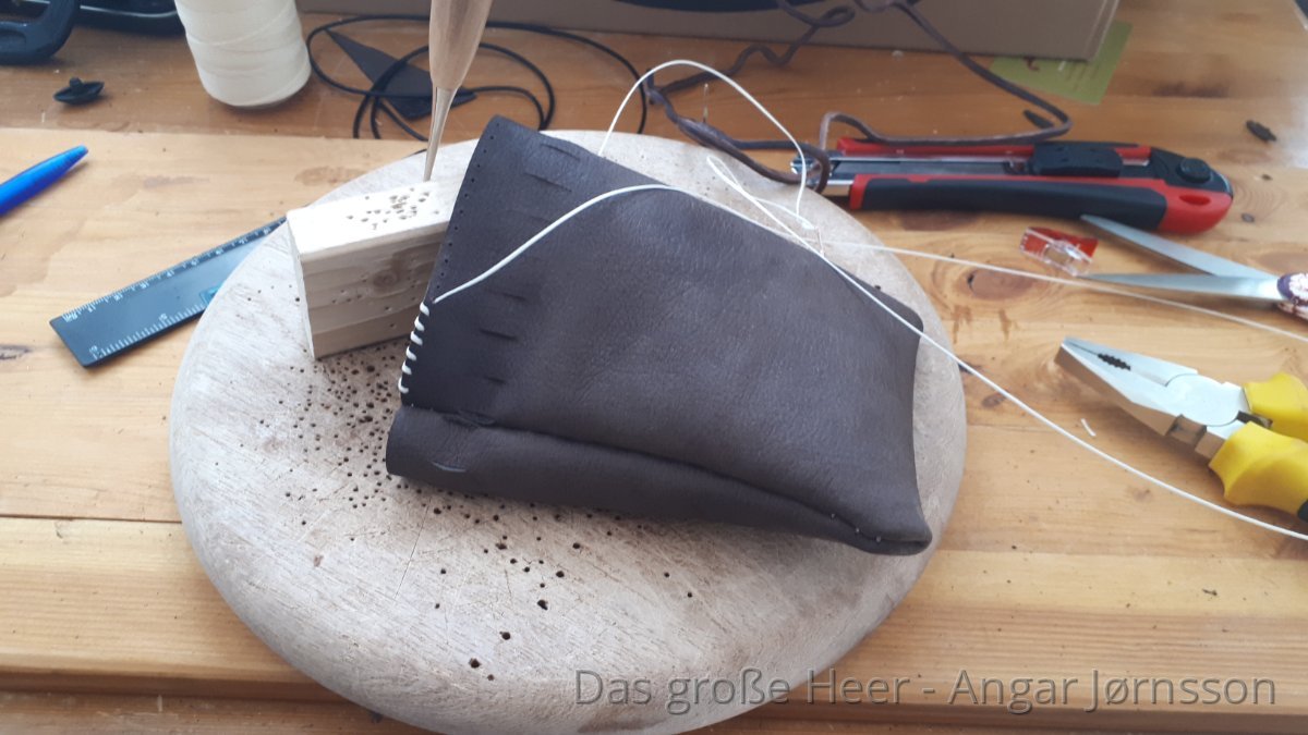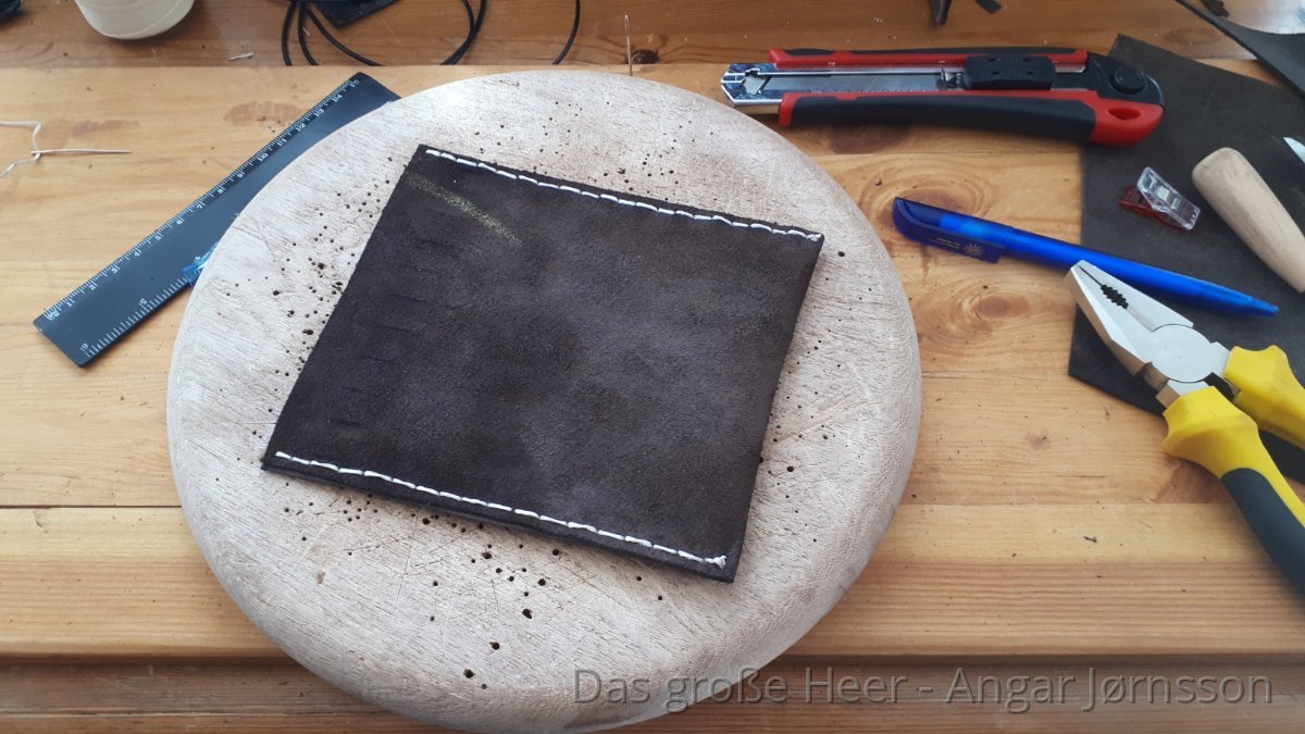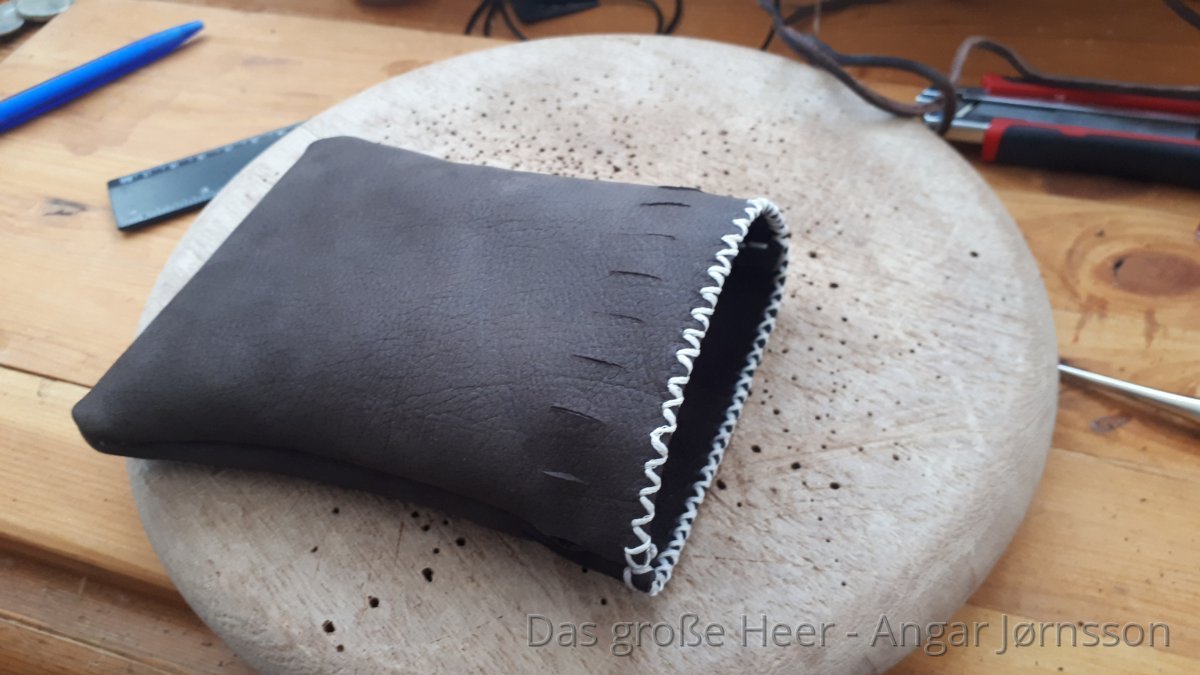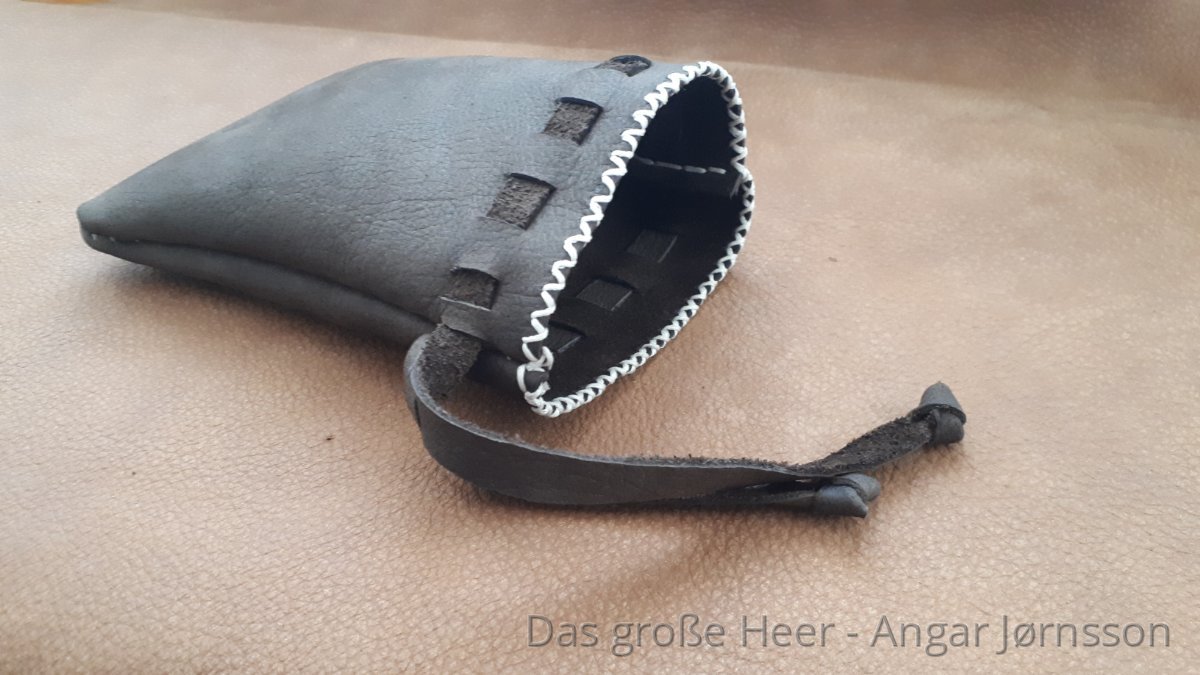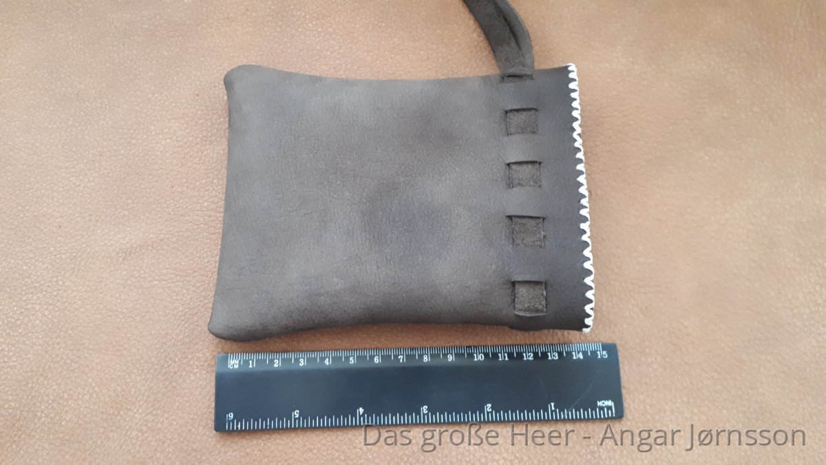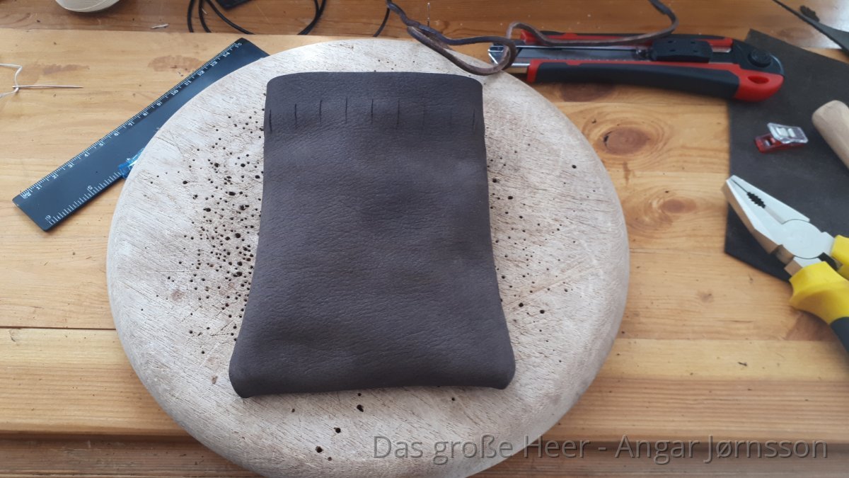 In meiner Rekonstruktion habe ich mich dafür entschieden den Beutel aus einem Stück zu fertigen. Denkbar ist aber auch, dass er aus zwei gleichgroßen Lederstücken gemacht war die aufeinandergenäht wurden.
