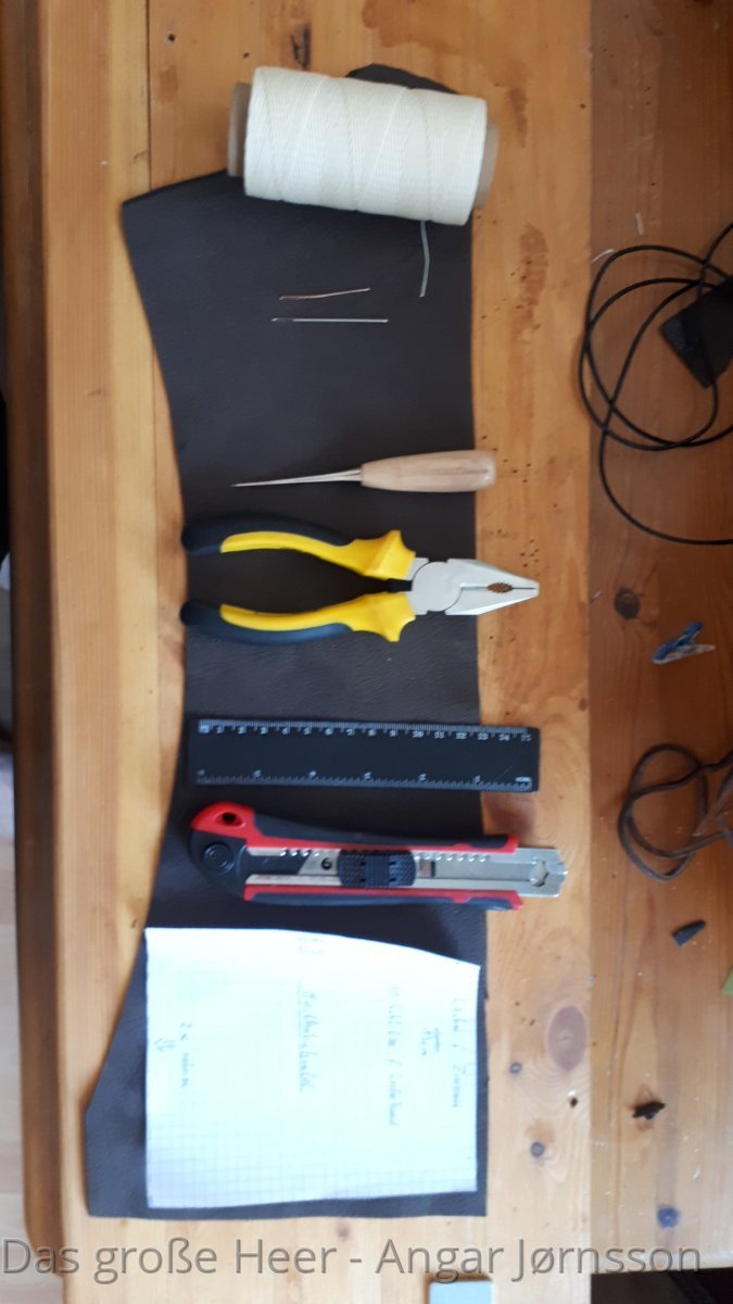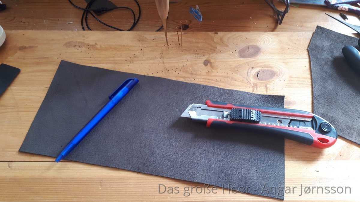 Zunächst mal benötigt ihr natürlich ein Stück Leder. Hierfür eignet sich wie im Original natürlich Ziegenleder aber auch andere Lederarten können verwendet werden.