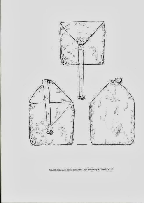 Wie auf der Illustration aus dem Werk Die Lederfunde aus der frühgeschichtlichen Wurt Elisenhof (1985 Frankfurt a. M.) von Gertrud Grenander-Nyberg zu erkennen ist, handelt es sich bei der Elisenhof Tasche um eine eher kleine Tasche welche vermutlich als Geldböse oder zur Aufbewahrung von kleineren Alltagsgegenständen diente. Auffällig ist zudem, dass sie vergleichsweise unsauber gearbeitet erscheint. Man könnte also annehmen, dass der Hersteller kein "Profi" auf dem Gebiet der Taschenherstellung gewesen ist. Trotzdem werden wir versuchen unsere Tasche sauber zu verarbeiten.