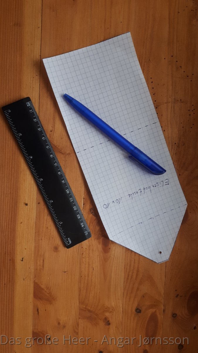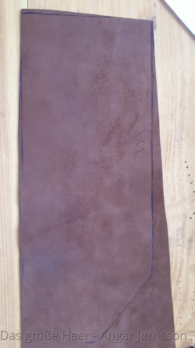 Zuerst benötigen wir ein Schnittmuster. Natürlich könnte man die Form auch direkt auf die Lederhaut übertragen, aber ich zeichne mir die Formen lieber erst einmal vor und übertrage sie dann.