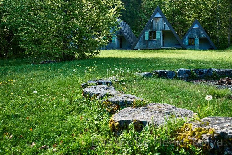 Haupthaus und mehrere kleine Hütten zur Übernachtung.