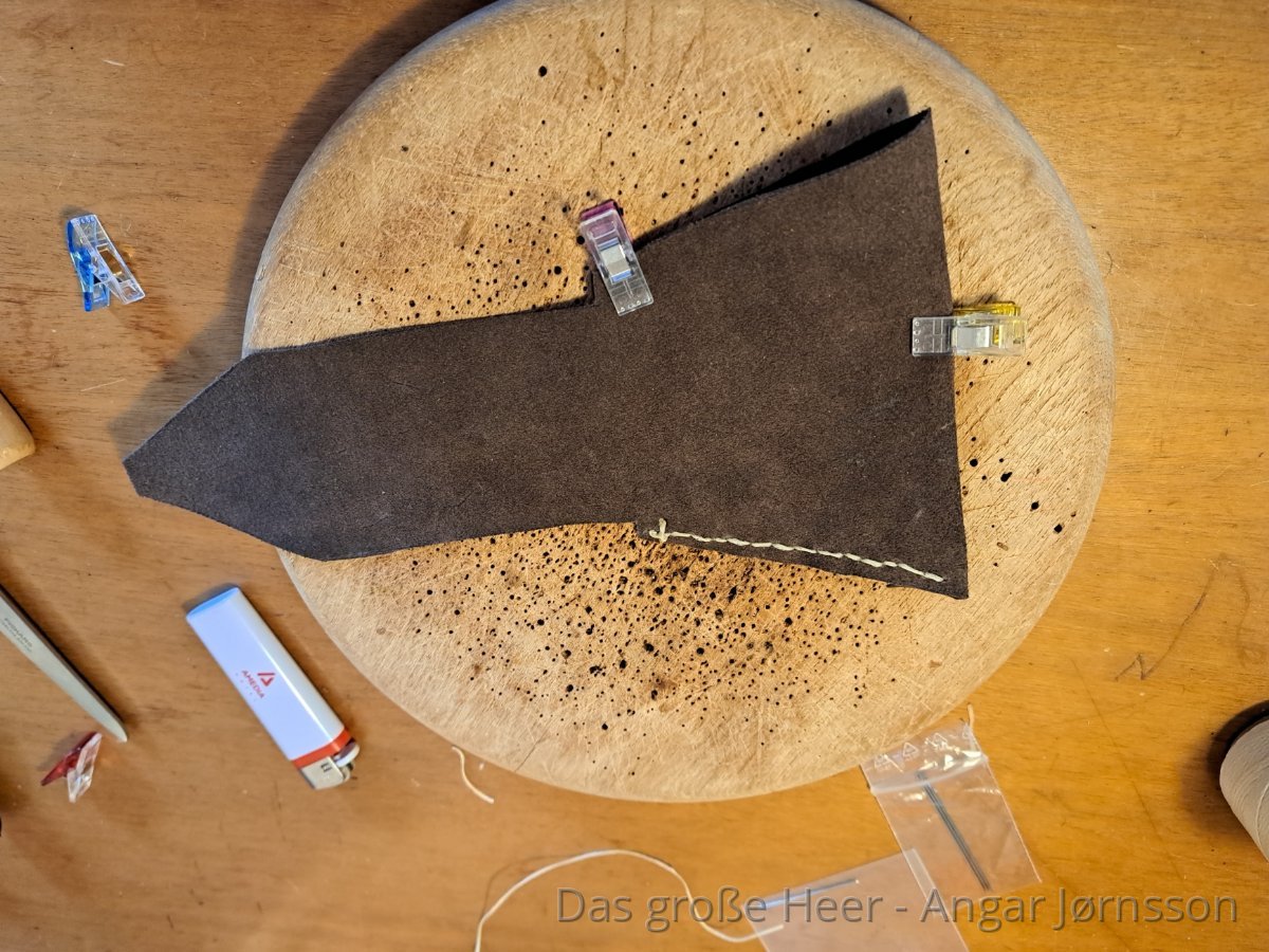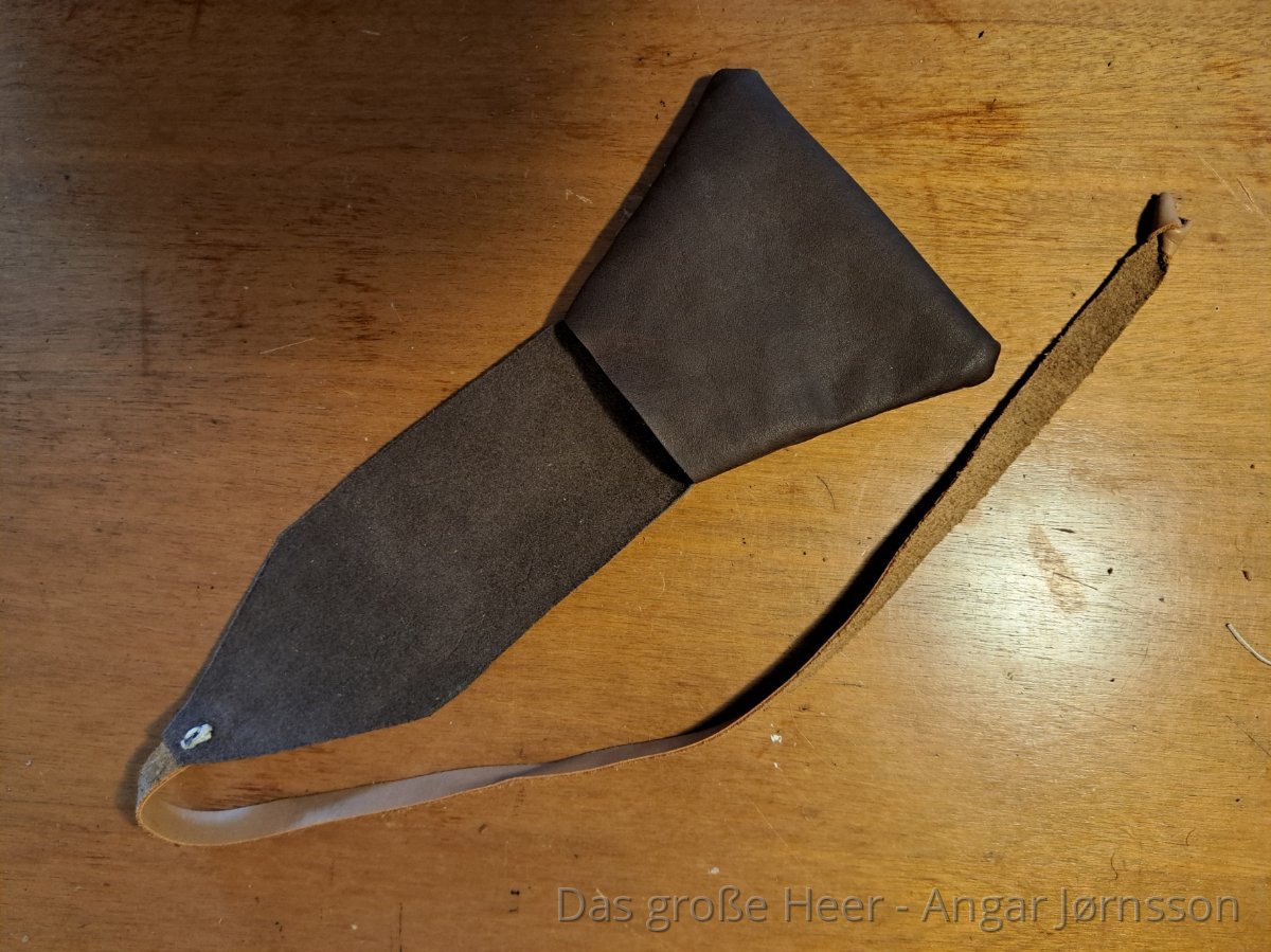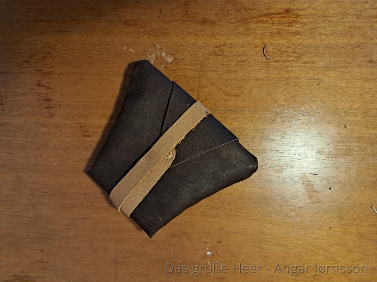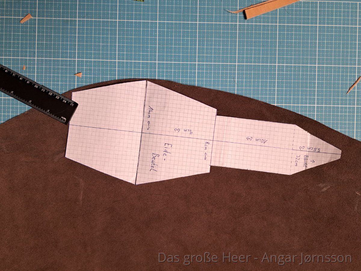 Zunächst benötigt ihr natürlich ein passendes Stück Leder. Hier bieten sich Ziegen- oder Rindsleder in geringer Stärke an. Wichtig ist, dass das Leder nicht zu steif ist damit der Beutel später gewickelt werden kann.