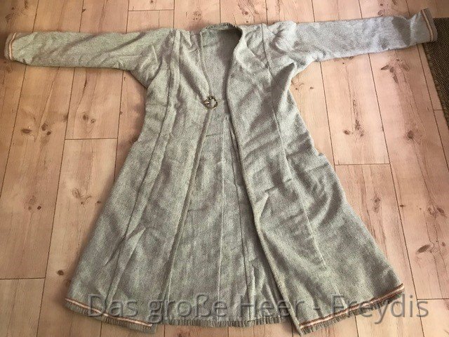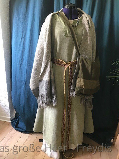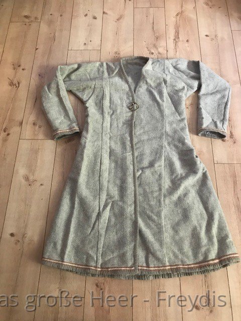 Wer es etwas aufwändiger mag, kann sich einen Mantel aus Wolle nähen, welcher ein klares Frauenkleidungsstück ist. Es gibt verschiedene Schnittmuster und Ausführungen. Ein Mantel ist im Prinzip wie ein Kleid, welches vorne geöffnet ist. Ein beliebtes Beispiel ist der Birka-Mantel. Dieser wird über der Brust mit einer Fibel geschlossen. Man kann einen Mantel auch mit einer Borte um die Taille schließen und leicht überlappen lassen.