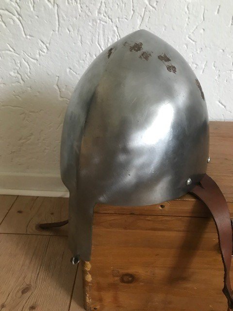 Typische Helme der Wikingerzeit, sind entweder aus einem Stück gefertigt, oder aus 2-4 Teilstücken und mit sogenannten Spangen verbunden. Bsp. für Helme: Nasalhelm Typ St. Wenzel, Nasalhelm Typ Ostrow Lednicki, Spangenhelm.